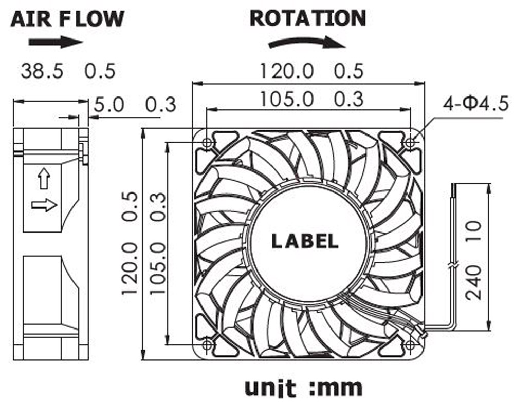 Ventilatore DC 120x120x38