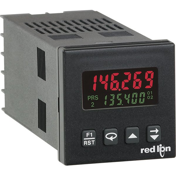 I contatori industriali da pannello Red Lion della serie C48 dispongono di un display a doppia linea LCD a 6 cifre disponibili in immagine positiva riflettente o negativa trasmissiva con immagini in rosso (riga superiore) e verde (riga inferiore) con retroilluminazione.