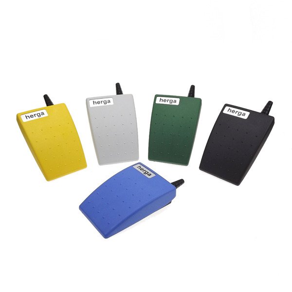 Interruttori a pedali in plastica Herga, di forma ergonomica, grande varietà di colori, personalizzabili con logo aziendale o simboli. Serie: 6224 – 6225 – 6226