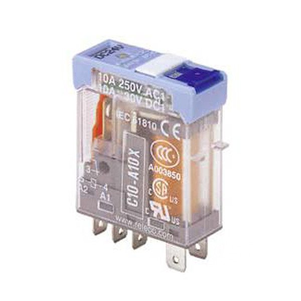 1, 2 contatti in scambio da 10A elettromeccanici o elettronici, La serie comprende i tipi C10 e C12.